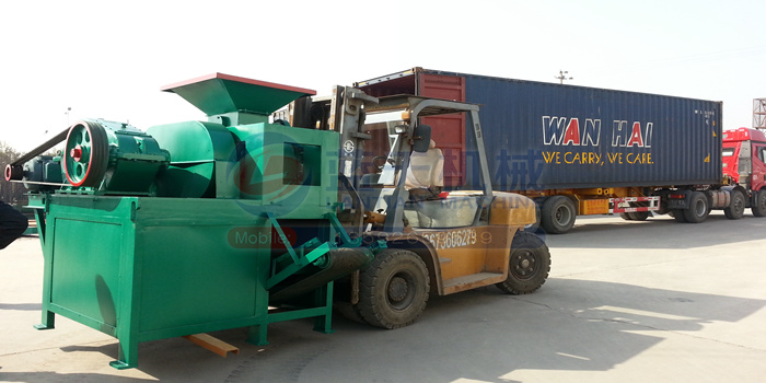 炭粉壓球機發(fā)往印度裝車現(xiàn)場