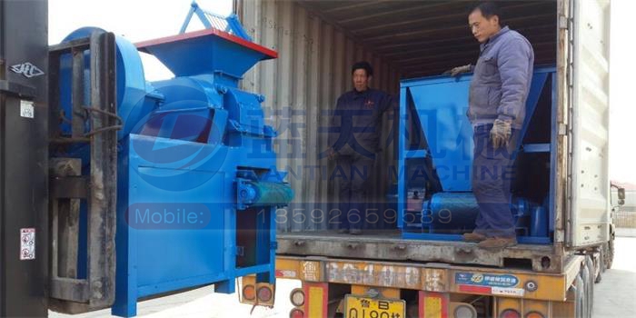 炭粉壓球機發(fā)往印度裝車現(xiàn)場