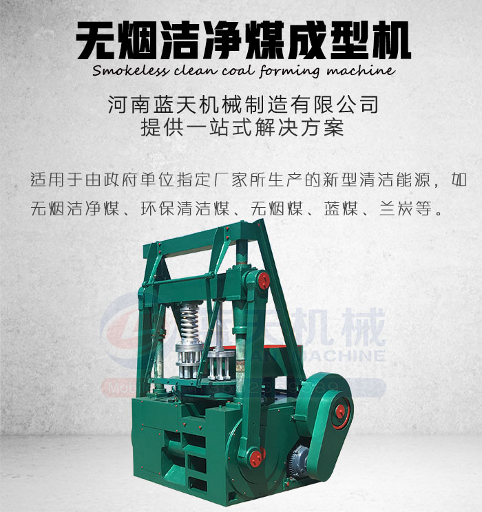 河南藍天機械制造有限公司生產(chǎn)無煙潔凈煤成型機目的在于面對當(dāng)今中國環(huán)境污染,霧霾困擾等問題促進無煙潔凈煤民用使用率。
