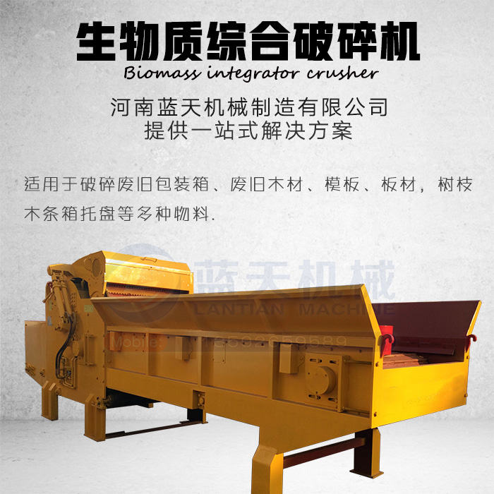 生物質(zhì)綜合破碎機是河南藍天機械制造有限公司在模板破碎機本身設(shè)備的基礎(chǔ)上升級而成的設(shè)備。該設(shè)備集合了模板破碎機的優(yōu)點拋棄了模板破碎機不能破碎大塊物料的缺點而研發(fā)的設(shè)備。生物質(zhì)綜合破碎機適合破碎廢舊包裝箱,模板,板材,樹枝,木條箱,托盤等多種物料。【使用范圍】:生物質(zhì)綜合破碎機可加工帶釘子木材、木托盤、工地廢舊模板、木托架、廢舊家具、樹墩、樹樁、木頭、模板廢料、房屋拆遷廢料、廢舊門窗、家具等物料,不限進料尺寸進行破碎。可用于生物質(zhì)發(fā)電廠、做燃料、燒火、生產(chǎn)鋸末前置工序等專業(yè)的粗破設(shè)備。
