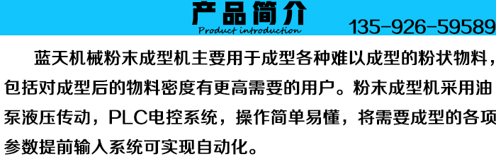 粉末成型機(jī)用途廣泛,可壓制如炭粉、礦粉、干粉、石墨粉、陶瓷、炭黑、焦末、水泥灰、煤粉、粉煤灰、冶煉渣、廢礦渣、廢陶粒渣等粉末狀或難以成型的散裝物料。主要用于煤炭、建材、化工、食品、電子、粉末冶金等行業(yè)。粉末成型機(jī)是河南藍(lán)天機(jī)械制造有限公司應(yīng)廣大新老用戶的需要,在原有成型機(jī)基礎(chǔ)上總結(jié)生產(chǎn)過(guò)程中的實(shí)踐經(jīng)驗(yàn),同時(shí)吸取了國(guó)外同類(lèi)型機(jī)種的優(yōu)點(diǎn),新研制生產(chǎn)的全自動(dòng)粉末成型機(jī)。“藍(lán)天”全自動(dòng)粉末成型機(jī)擁有液壓傳動(dòng),PLC電控系統(tǒng),操作簡(jiǎn)單易懂,壓力大,廣泛用于壓制難以成型的各種粉狀物料,如金屬粉,因此也被稱(chēng)呼為金屬粉末成型機(jī)。粉末成型機(jī)整機(jī)結(jié)構(gòu)簡(jiǎn)單方便維護(hù)與維修,同時(shí)投資成本相比同類(lèi)生產(chǎn)線要低的多,在市場(chǎng)上產(chǎn)生了強(qiáng)大的競(jìng)爭(zhēng)力。